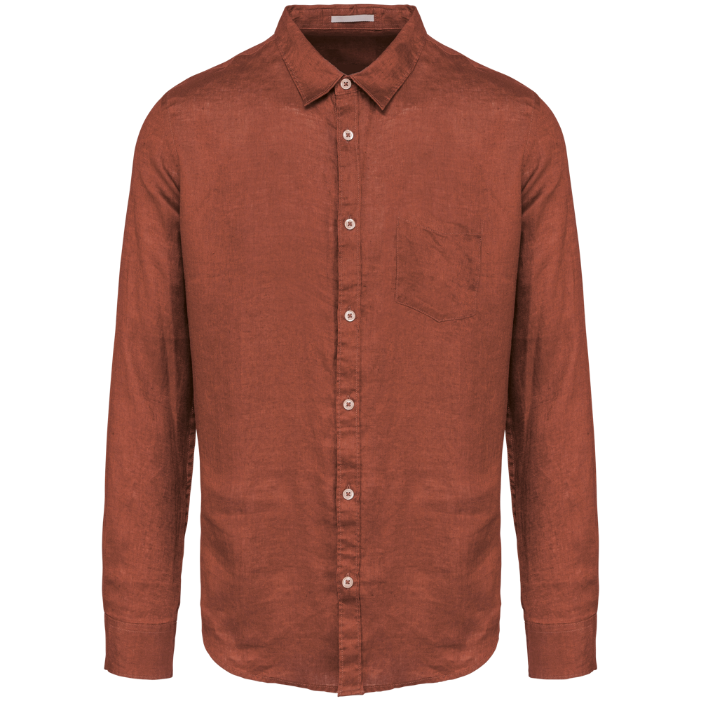100 % Linnen. Geweven. Afgewassen blouse. Rechte snit. Klassieke knooplijst met knopen met parelmoereffect. Borstzak aan de linkerkant Inzetsel op de rug met plooi voor meer bewegingsvrijheid. Knopen op de polsband met verstelbaar uiteinde. Contrasterend Natural biesje aan de binnenkant van de kraagstaander. De kleur Linen werd niet geverfd en kan variëren van product tot product.