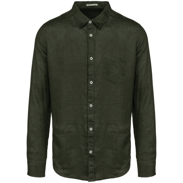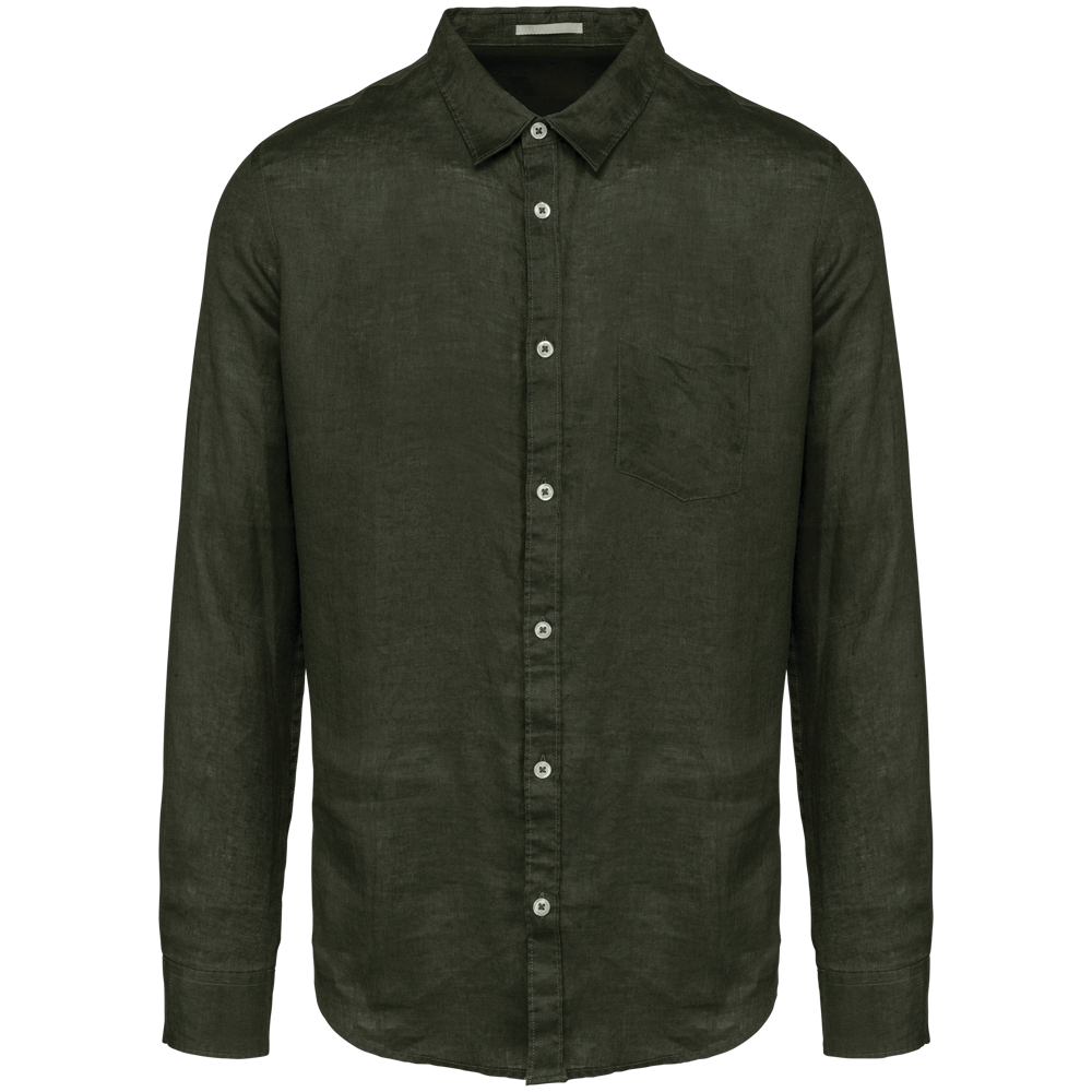100 % Linnen. Geweven. Afgewassen blouse. Rechte snit. Klassieke knooplijst met knopen met parelmoereffect. Borstzak aan de linkerkant Inzetsel op de rug met plooi voor meer bewegingsvrijheid. Knopen op de polsband met verstelbaar uiteinde. Contrasterend Natural biesje aan de binnenkant van de kraagstaander. De kleur Linen werd niet geverfd en kan variëren van product tot product.