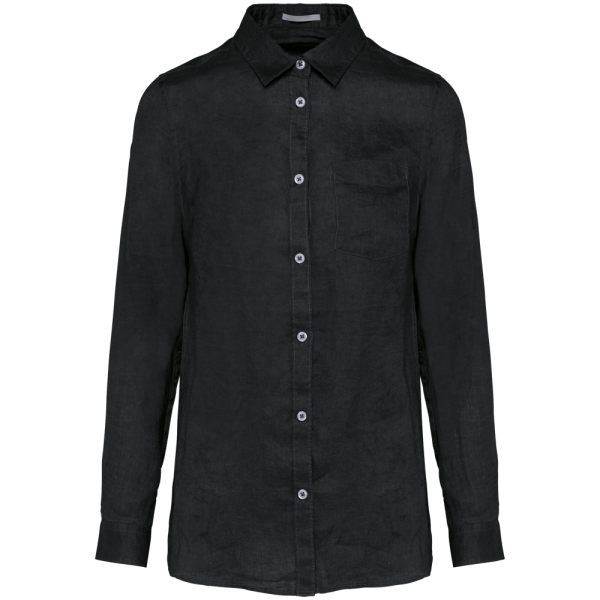 100 % Linnen. Geweven. Afgewassen blouse. Rechte snit. Klassieke knooplijst met knopen met parelmoereffect. Borstzak aan de linkerkant Inzetsel op de rug met plooi voor meer bewegingsvrijheid. Knopen op de polsband met verstelbaar uiteinde. Contrasterend Natural biesje aan de binnenkant van de kraagstaander. De kleur Linen werd niet geverfd en kan variëren van product tot product.
