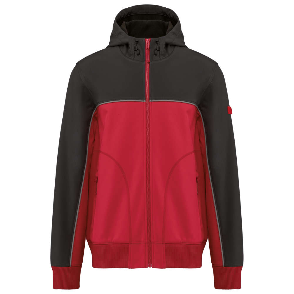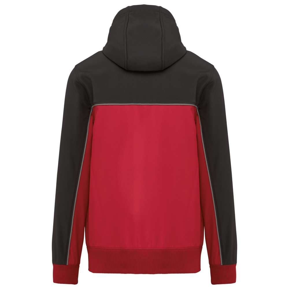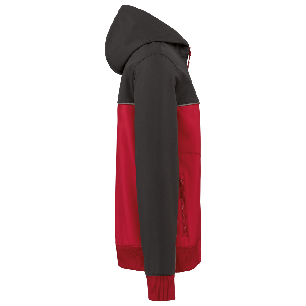 96% polyester / 4% elasthan. 3-laagse ademende stof 3000 g/m²/24 u en waterdicht 5000 mm. Buitenkant: 96% polyester / 4% elasthan. Tussenlaag: ademend en waterdicht membraan. Binnenlaag: microfleece. BIONIC FINISH ® ECO behandeling (waterdicht, zonder fluor voor optimale prestaties). Plastic ritssluiting met ton-sur-ton ritstrekker. 2 ritszakken met ritstrekker aan de voorkant. 3-delige, verstelbare capuchon met stoppers in de naad. Contrasterend nektape met ophanglint in de kraag. Elastische penhouder met 3 vakken op de linkermouw. Contrasterende bies tussen de tweekleurige delen van het kledingstuk (lichaam, voorkant mouwen en rug). Gevoerde 2x2 ribboord met elasthan aan de mouwuiteinden en de boord. Tear-away merklabel.