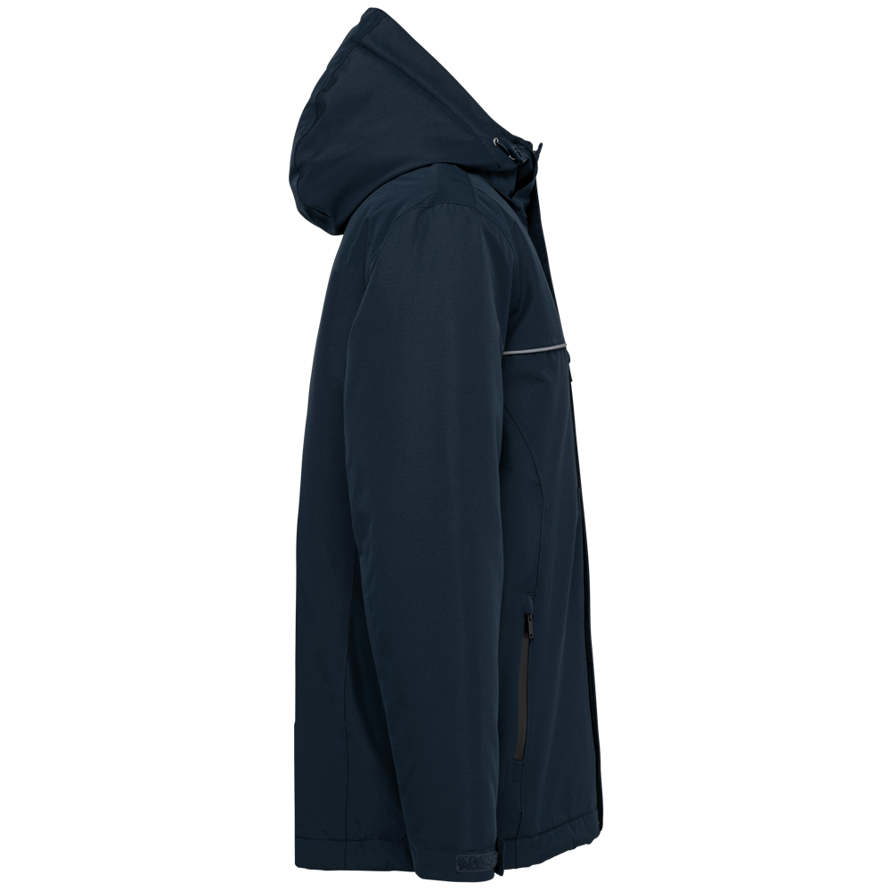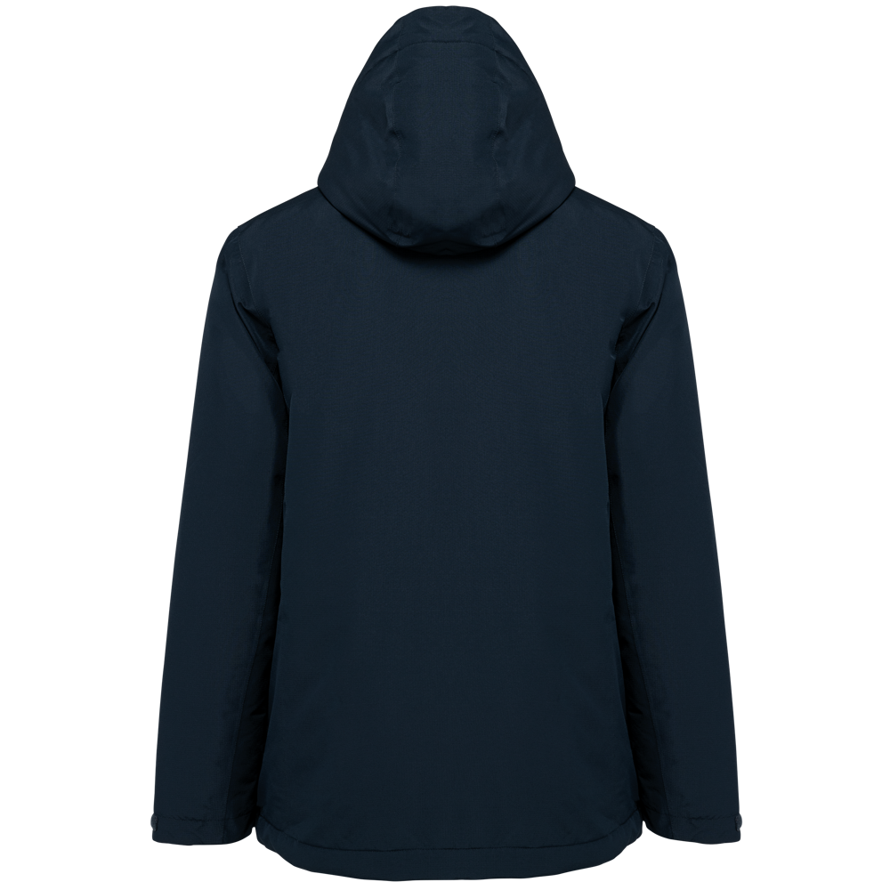 100% polyester. 2-laags ripstop gelamineerde stof met ademend TPU-membraan 3000 g/m²/24u. Waterdichte behandeling en volledig getapete naden. Wasbaar op 40°C. Bovenlichaam gevoerd met fleece. Onderkant van het kledingstuk en mouwen gevoerd met gewatteerd 300T polyester. Vulling: 100% polyester. Ritssluiting met kinbescherming verborgen onder een stormflap met klittenbandsluiting. 2 zijzakken en 1 borstzak met waterdichte ritsen. Contrasterende paspel op borsthoogte. Manchetten verstelbaar met klittenband. Afneembare en gevoerde capuchon verstelbaar met elastische trekkoorden en koordstoppers. 1 binnenzak met klittenbandsluiting aan de rechterkant van de borst. 2 binnenritsen voor personalisatie: 1 op de linkerborst en 1 onderaan de rug. Ophanglus aan de binnenkant van de bovenrug. Verstelbare zoom met elastische trekkoorden en stoppers. PBM Categorie I. Ontworpen volgens EN ISO 13688:2013+A1:2021 “Beschermende kleding - Algemene vereisten” en voldoet aan EN 343:2019 “Beschermende kleding - Bescherming tegen regen”: Klasse 3 / Klasse 1 / X. Afneembaar merklabel.