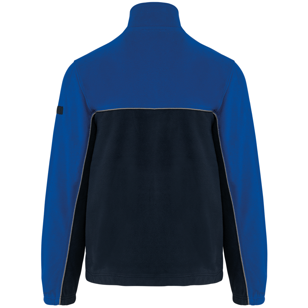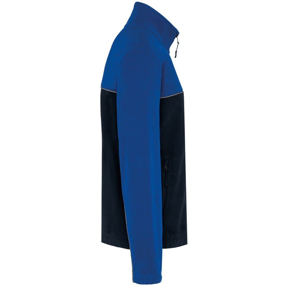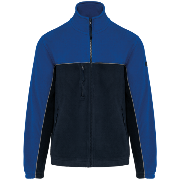 100% polyester. Gemaakt van 100% gerecycleerd polyester. Anti-pluis microfleece. Rechte snit. 2 ritszakken opzij + 1 borstzakje met rits Gerecycleerde toon-op-toon plastic ritsen met ritstrekker. Contrasterende nektape met visgraatmotief. Contrasterende bies tussen de tweekleurige delen van het kledingstuk (lichaam, voorkant mouwen en rug). Elastische penhouder met 3 vakken op de linkermouw. Ophanglint in de kraag. Elastische mouwuiteinden en boord. Tear-away merklabel.