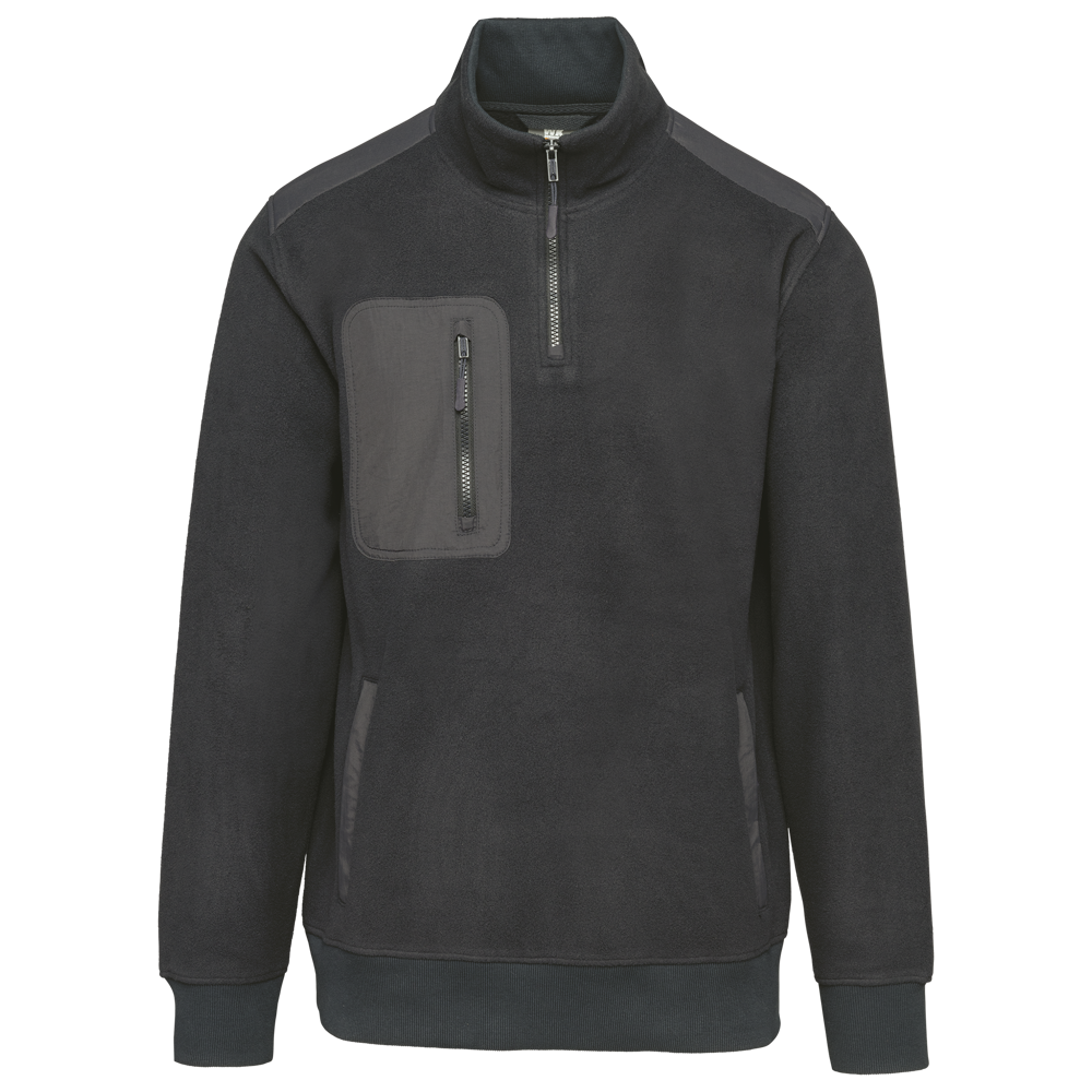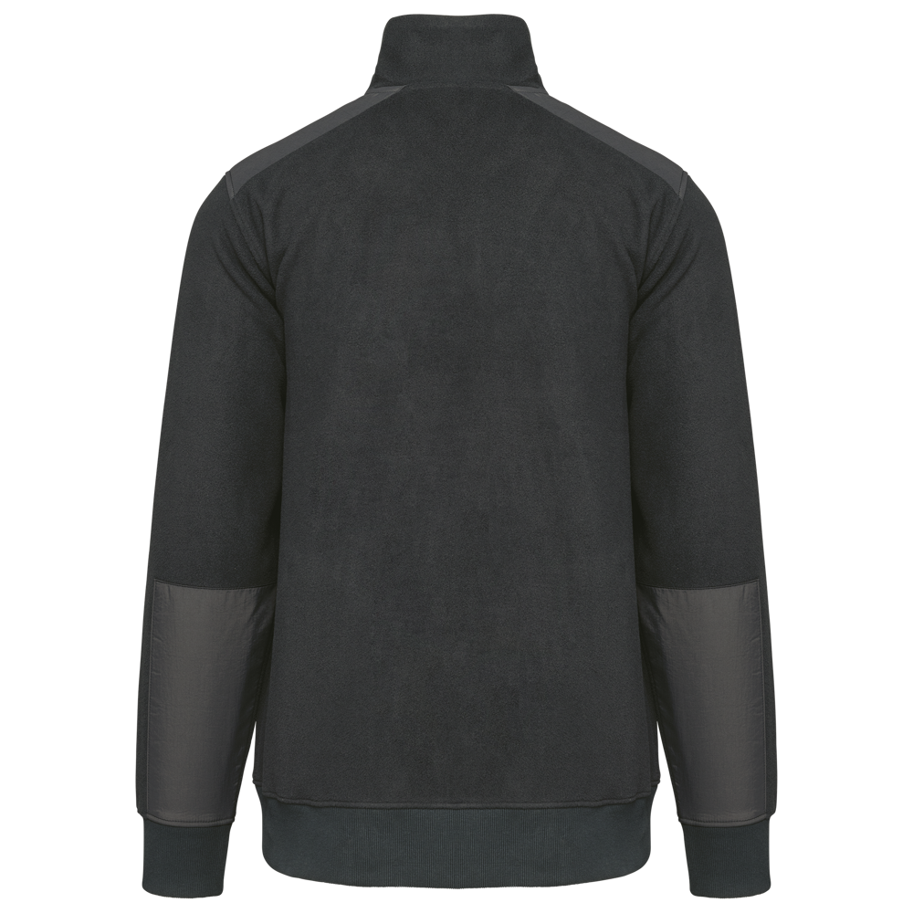 100% gerecycleerd polyester post-consumer. Rechte snit. 2 ritszakken met bies in taslan met ritstrekker aan de voorkant. 1 afgerond borstzakje met rits en ritstrekker in taslan met toon-op-toon stiksel rechts (bij het dragen). Kraag gevoerd met 2x2 ribtricot en rits van gerecycleerd plastic + ophanglus in de kraag. Verstevigende inzetsels aan schouders en voorarm in taslan. 2x2 ribboord in buisconstructie aan de mouwuiteinden en de onderkant. Afneembaar merklabel.