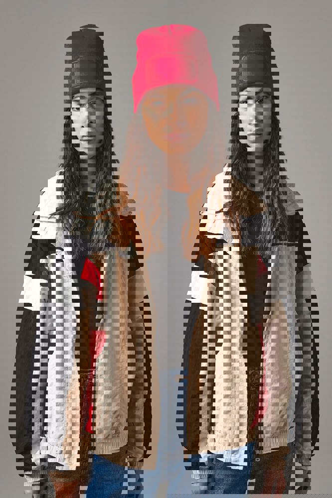77 g. 100% zacht aanvoelend acryl. Applicatie van 5x10 cm in 100% katoen om de muts eenvoudig te personaliseren. Dubbellaags.
