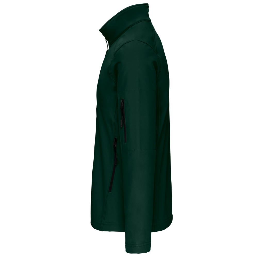 Stof in 3 lagen aan elkaar geklit, ademend 3000 g/m2/24H en 8000 mm waterdicht. Buitenkant: 95% polyester / 5% elasthan. Tussenlaag: ademend membraan. Binnenkant: microfleece. Ritssluiting. Zakken met rits aan de voorkant. 1 zak met rits op de linkermouw.