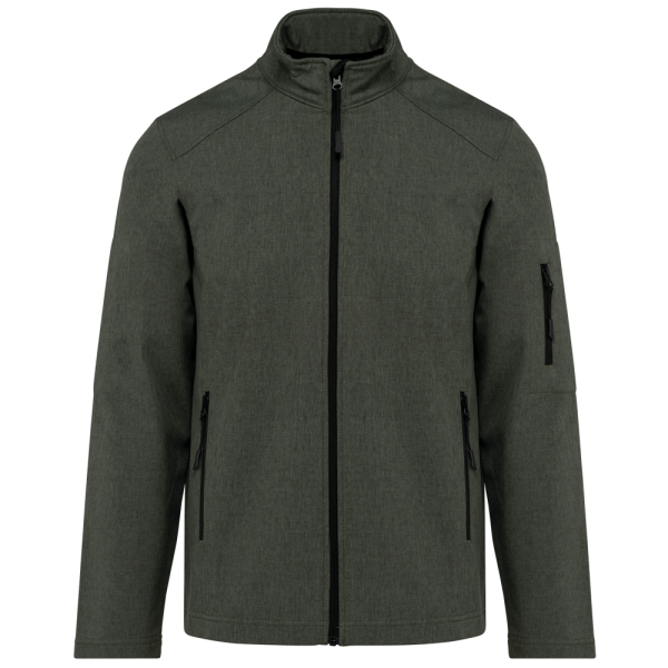 Stof in 3 lagen aan elkaar geklit, ademend 3000 g/m2/24H en 8000 mm waterdicht. Buitenkant: 95% polyester / 5% elasthan. Tussenlaag: ademend membraan. Binnenkant: microfleece. Ritssluiting. Zakken met rits aan de voorkant. 1 zak met rits op de linkermouw.