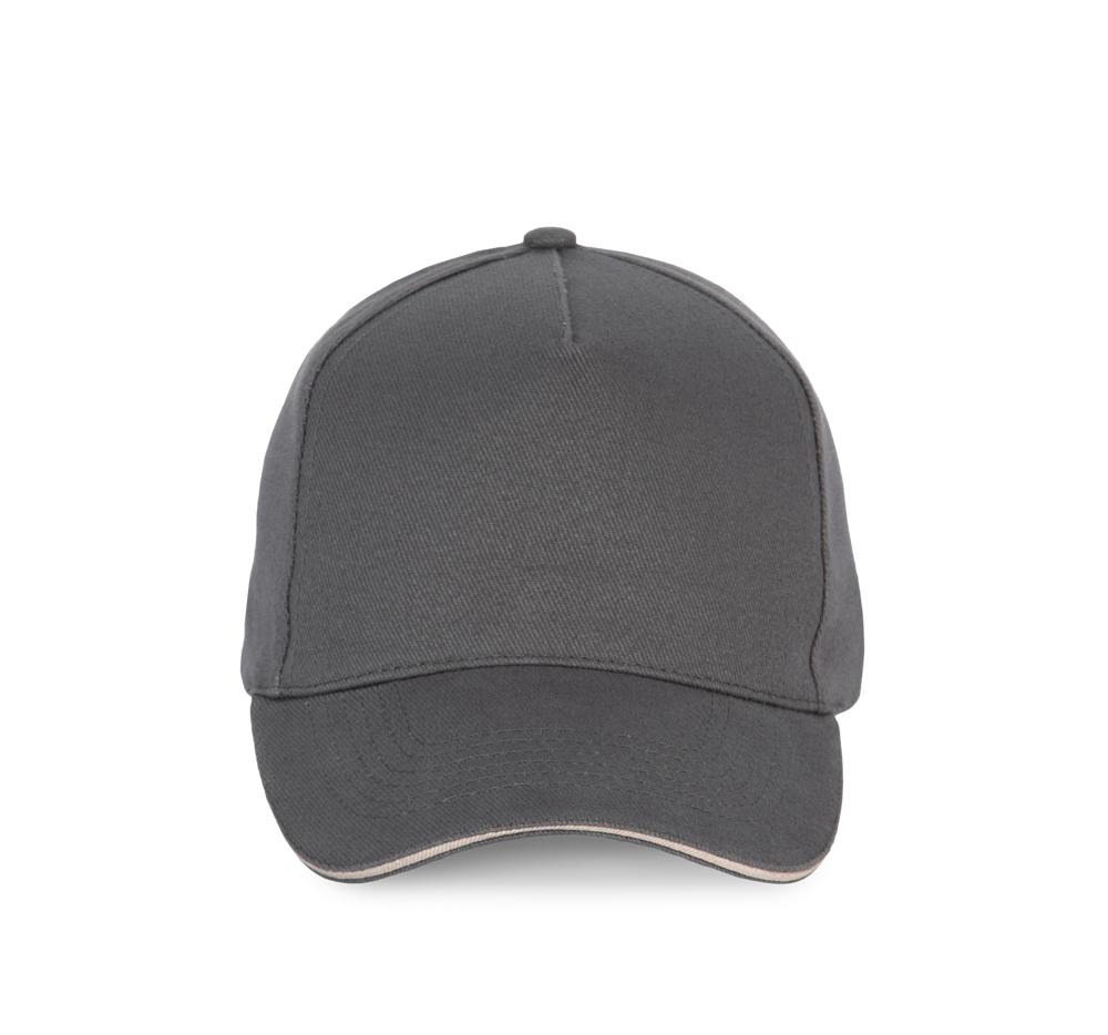 100% katoen. Pet met 5 panelen. Verstelbare sluiting met metalen gesp en zelfblokkerende lus.