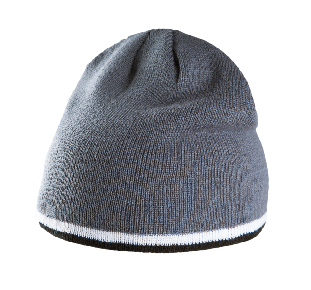100% acryl. Gebreide muts met tweekleurig gecontrasteerd boord aan de rand.