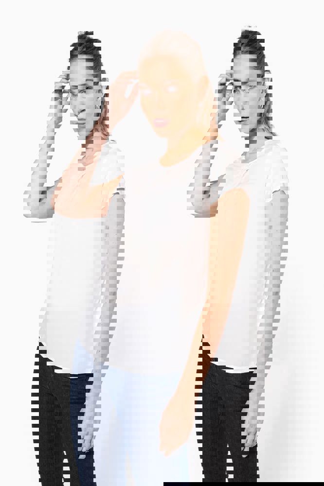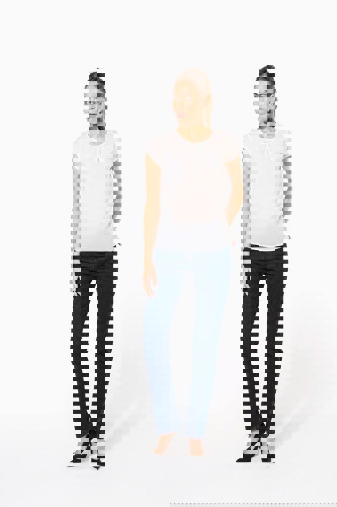 100% polyester. Soepele en lichte crêpe. Ronde hals. Fronsjes aan de halsopening aan de voorkant....meer