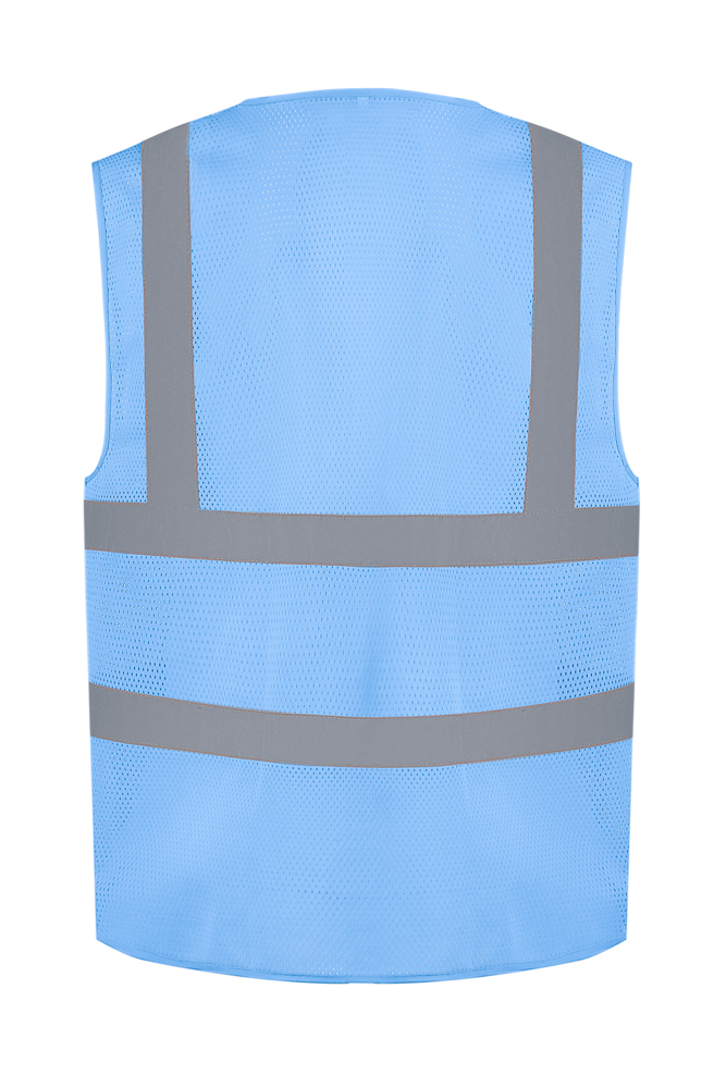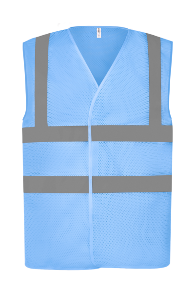 100% polyester. 100% gerecycled polyester. Gemaakt van petflessen. Gemaakt van ademende, licht gebreide gaas. 5 cm brede reflectieband rond het lichaam en over elke schouder. Velcro® sluiting vooraan. Conform aan de Amerikaanse Nationale Norm ANSI/ISEA 107-2004 en Europese EN ISO20471:2013 Klasse 2 : enkel Hi-Vis Orange en H-Vis Yellow.