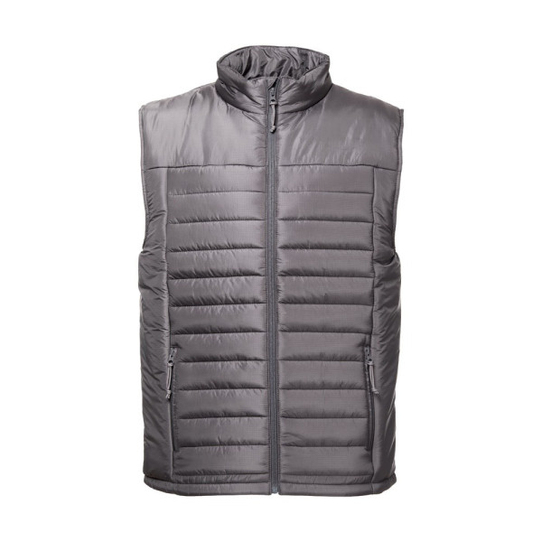 Gewatteerd vest (unisex) in 100% gerecycled nylon ripstop (350 g/m²), de binnenkant is gevoerd met 100% gerecycled nylon taffeta (350 g/m²) voor meer draagcomfort. Opening aan de voorkant met YKK® rits - een merk dat moderne apparatuur gebruikt met een hoge kwaliteitscontrole - en handvat. Twee voorzakken met ritsen en trekkers en twee binnenzakken met zelfklevende ritsen. Op de onderrug zit een toegang met rits voor eenvoudige personalisatie. Maten: XS, S, M, L, XL, XXL, 3XL