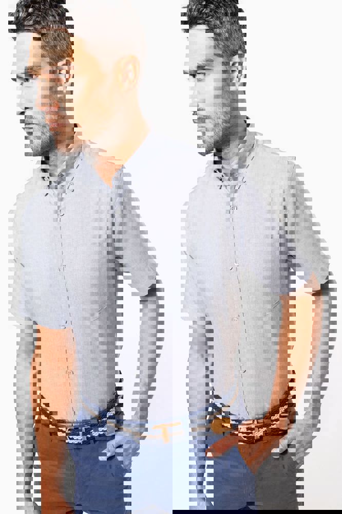 70% oxford katoen / 30% polyester. Gemakkelijk in onderhoud (Easy Care). Button down. Toon op toon knopen. Borstzakje. Dubbel inzetstuk op de rug en 2 plooitjes. Mouwuiteinden omgezoomd. 2 extra knopen. Afgerond boord aan de onderkant.