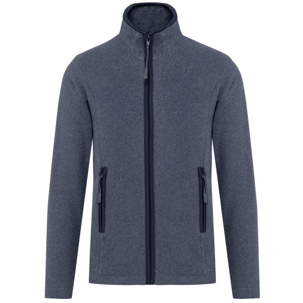 100% polyester microfleece met anti-pilling behandeling. 2 zijzakken met rits. Gerader Schnitt. Afwerkingsbiesje aan de kraag, de mouwuiteinden en de ritsen.