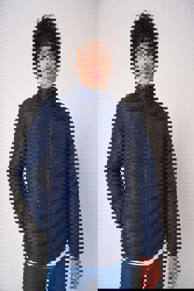 100% polyester 290T. Vulling: 100% polyester. Voering: 100% polyester 290T in toon-op-toon kleur. Rechte snit. Opstaande kraag. Twee zijzakken met voering in 290T, nylonritsen en toon-op-toon ritstrekkers. Twee binnenzakken. Ritssluiting in toon-op-toon nylon met kinbescherming en ritstrekker. Horizontale gewatteerde naden. Extra brede banen van 11 cm aan de voorkant en 14,5 cm aan de achterkant bevorderen personalisatie. Afwerking met elastische biais aan de mouwboorden en onderkant in toon-op-toon kleur. Ophanglus binnenin de kraag. Opvouwbaar in zijn eigen zak. Afneembaar merklabel. Geïnjecteerde vulling: het gramgewicht kan variëren naargelang de zones van het kledingstuk. Het totaalgewicht is indicatief.