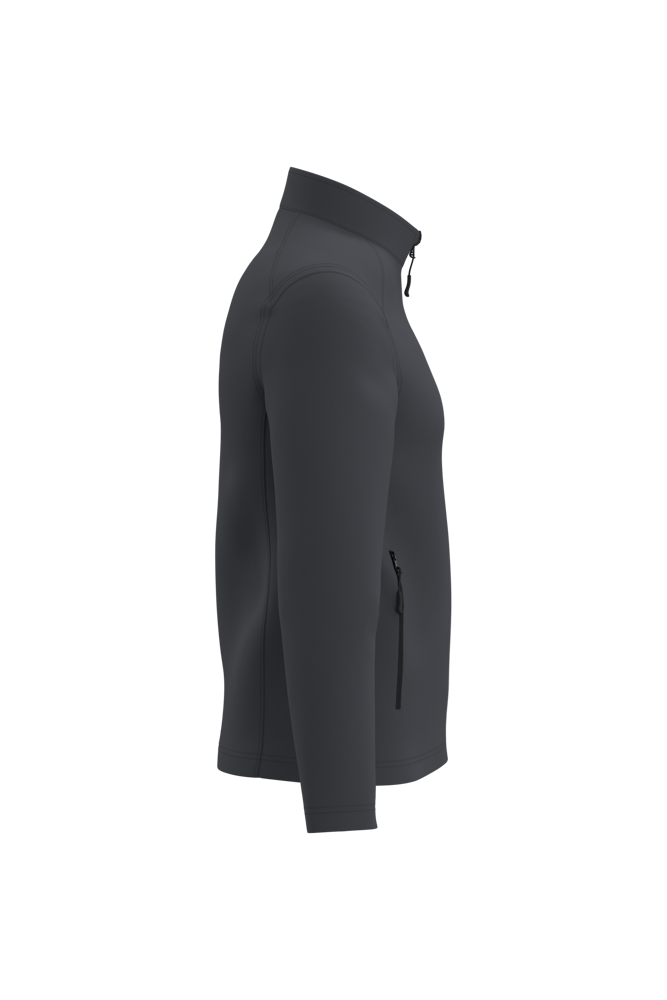 95% polyester / 5% elastaan. Softshell 2 lagen met waterafstotende behandeling. Binnenkant: zwarte microfleece van 100% polyester. Rechte snit. Opstaande kraag. Twee zijzakken met polytricot voering, nylonritsen en zwarte ritstrekkers. Ritssluiting in zwart nylon met kinbescherming en ritstrekker. Schouder- en rugstukken met sierstiksels. Zwarte nektape aan de binnenzijde. Mouwboorden en zoom afgwerkt met dubbele stiksels. Afneembaar merklabel.