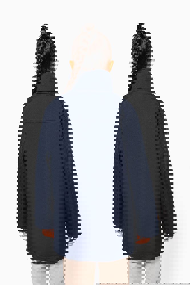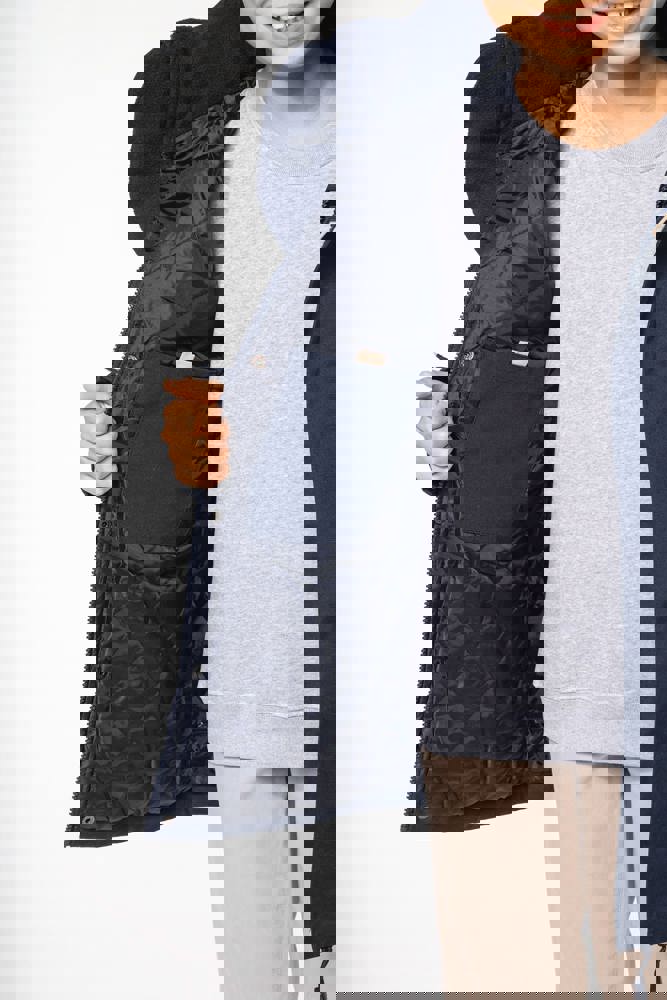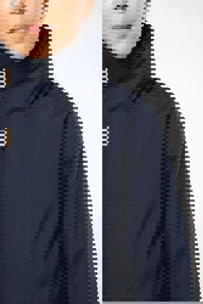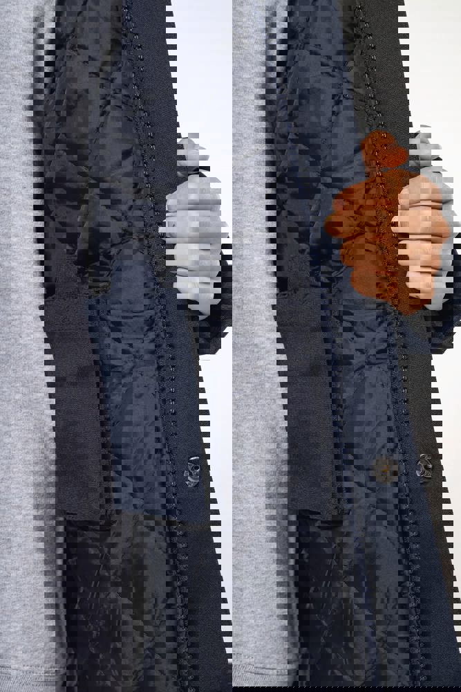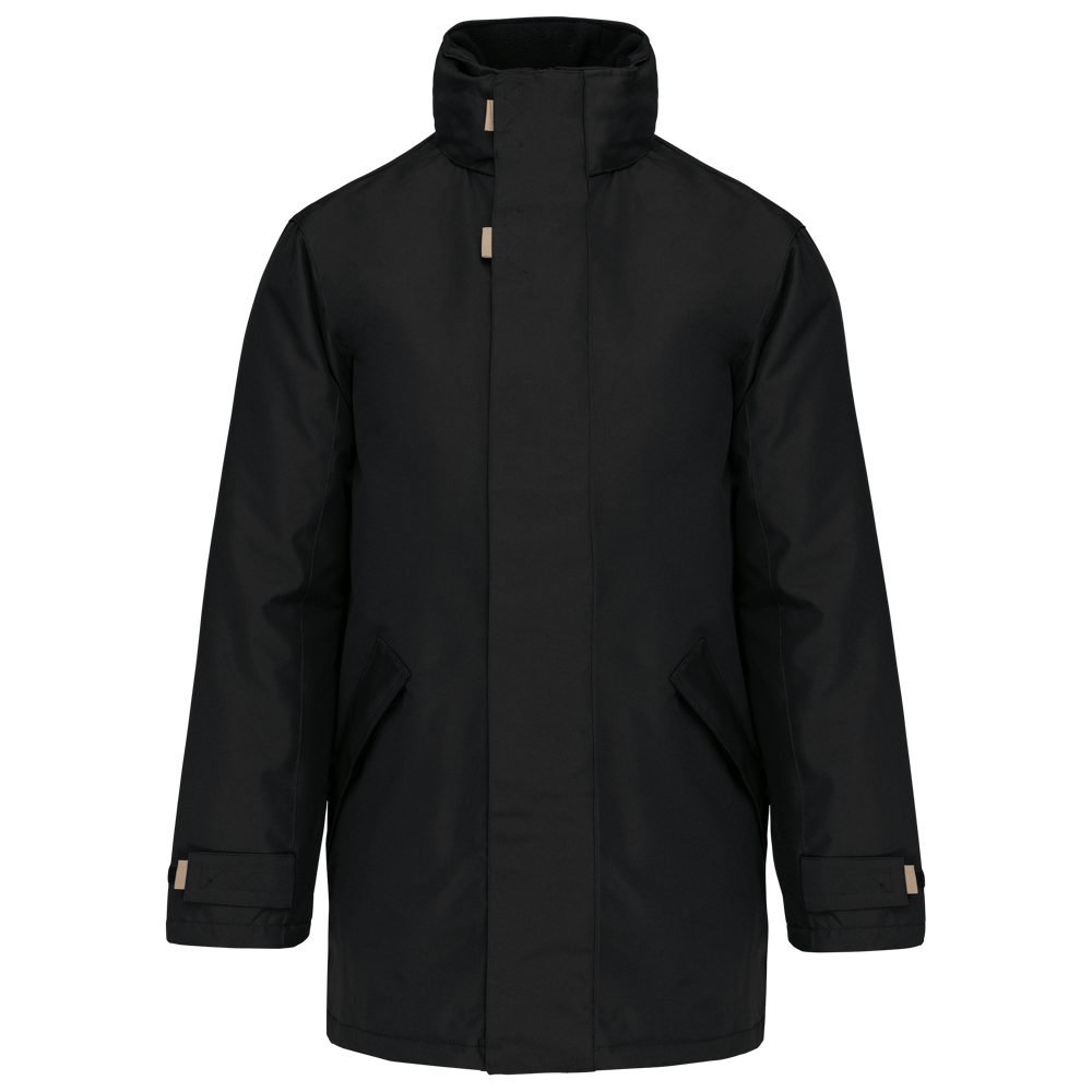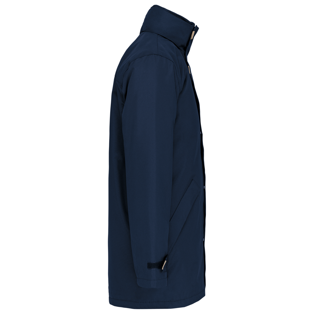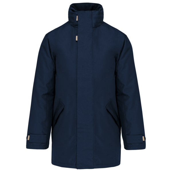 Buitenkant: 100% oxford polyester. Binnenkant: gewatteerd polyester. 2 voorzakken met rits. 2 binnenzakken waarvan 1 voor de GSM. Afneembare capuchon in de kraag. Kraag gevoerd met fleece. Drukkersrits. Waterdichte naden. Ritssluiting verborgen onder een lijst met drukknopen en klittenband. Verstelbare mouwuiteinden.