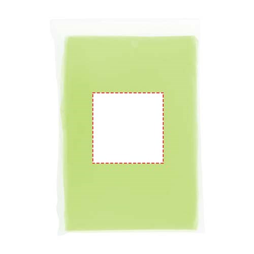 De Mayan one-size-fits-all wegwerp regenponcho is gemaakt van gerecycled plastic. Deze doorzichtige poncho met capuchon is ideaal om bij de hand te hebben als je wordt overvallen door een regenbui tijdens een openluchtfestival of een ander buitenevenement. Geleverd met een zakje dat kan worden bedrukt. Afmetingen: 90 x 120 cm.
