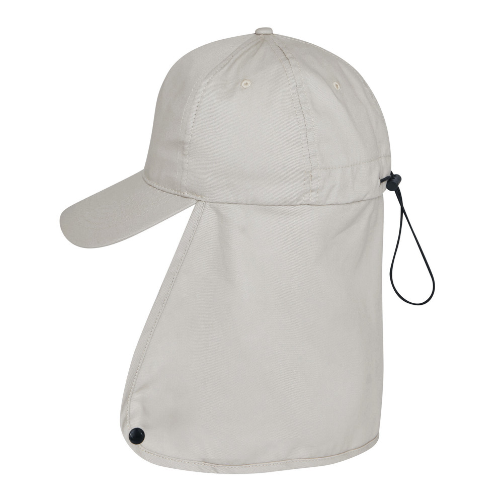 5-panel-baseballcap SOLGARD: verstevigd frontpaneel, 4 geborduurde ventilatiegaatjes, knop, aantrekkoord met stopper om aan de hoofdomtrek aan te passen, lange nekbescherming met drukknoopsluiting. Ideaal voor outdooractiviteiten en ter bescherming tegen zonnebrand, met UPF 50+ zonbescherming