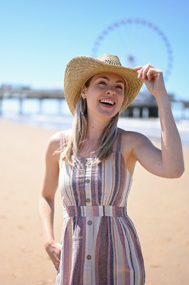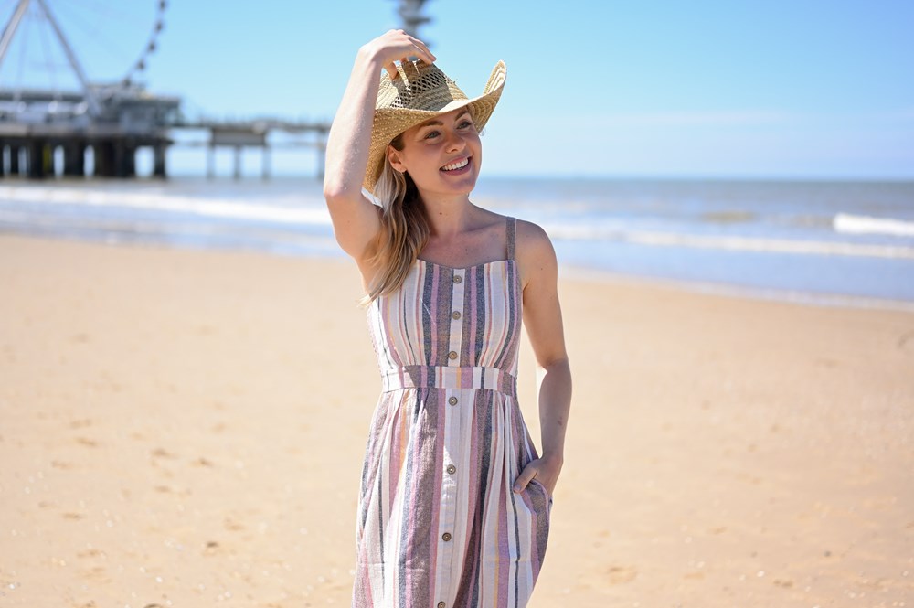 Deze strohoed heeft een zonnige en lichte uitstraling. Voeg een gekleurde band toe boven de rand...meer