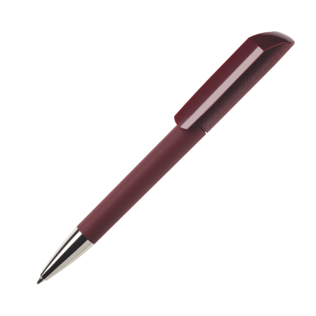Maxema balpen FLOW F1 GOM C CR, draaibalpen met gekleurde houder voorzien van rubber coating, glanzende gekleurde clip, mat gekleurd kunststof bovenstuk met opvallend motief, verchroomd puntstuk. Voorzien van Jumbo vulling met blauwe Dokumental inkt voor tot 2.500 meter schrijfplezier. Houder, bovenstuk en clip zijn leverbaar in maar liefst 22 kleuren welke vanaf 2.000 stuks onderling qua kleur gecombineerd kunnen worden.