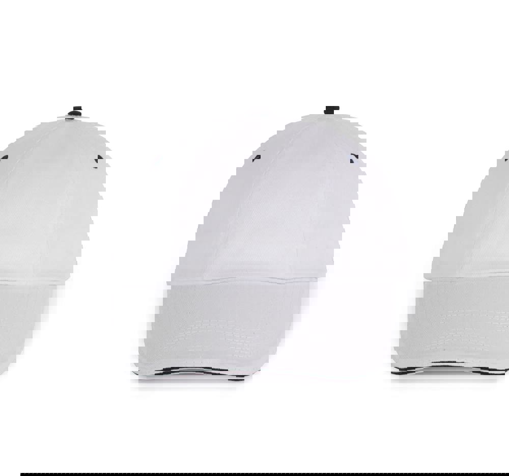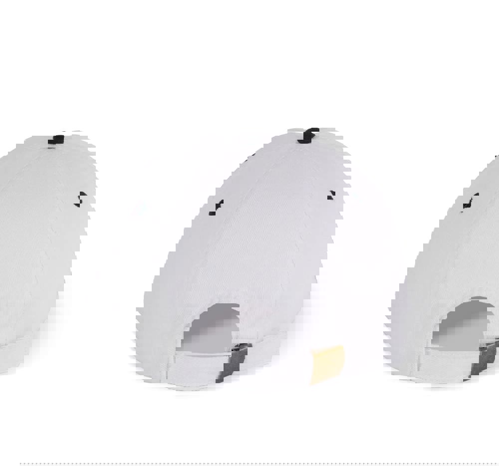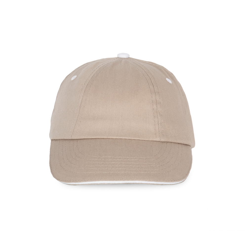 100% katoen twill. Eén segement aan de voorkant om de personalisatie te vereenvoudigen. Klep met contrasterende bies. Verstelbare sluiting met een metalen gesp.