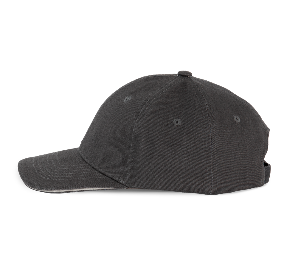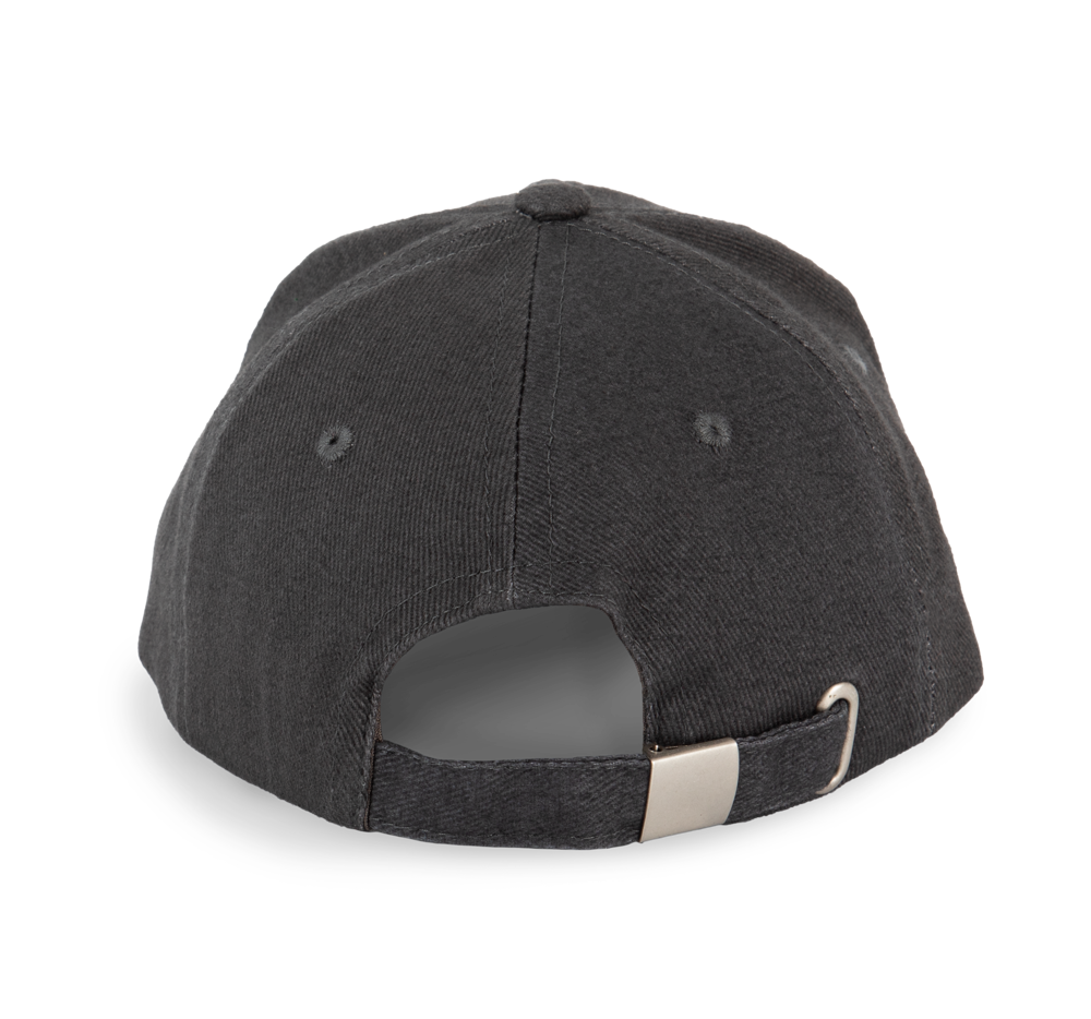 100% zwaar geborsteld katoen twill. Voorgevormde klep met contrasterende bies. Verstelbare sluiting met een zilverkleurige metalen gesp.