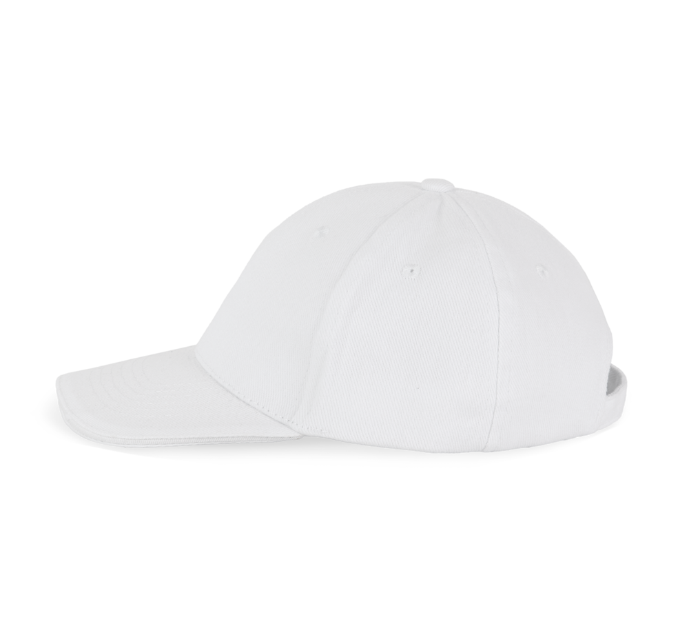 100% zwaar geborsteld katoen twill. Voorgevormde klep met contrasterende bies. Verstelbare sluiting met een zilverkleurige metalen gesp.