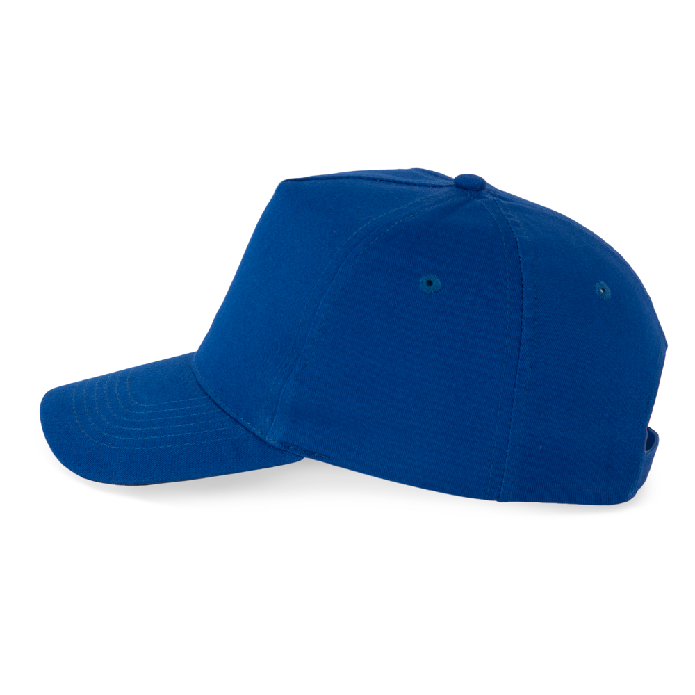 100% katoen twill. Verstevigde voorkant. Voorgevormde klep. Verstelbare sluiting met een zilverkleurige metalen gesp.