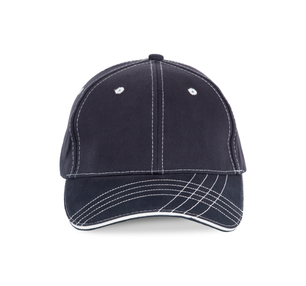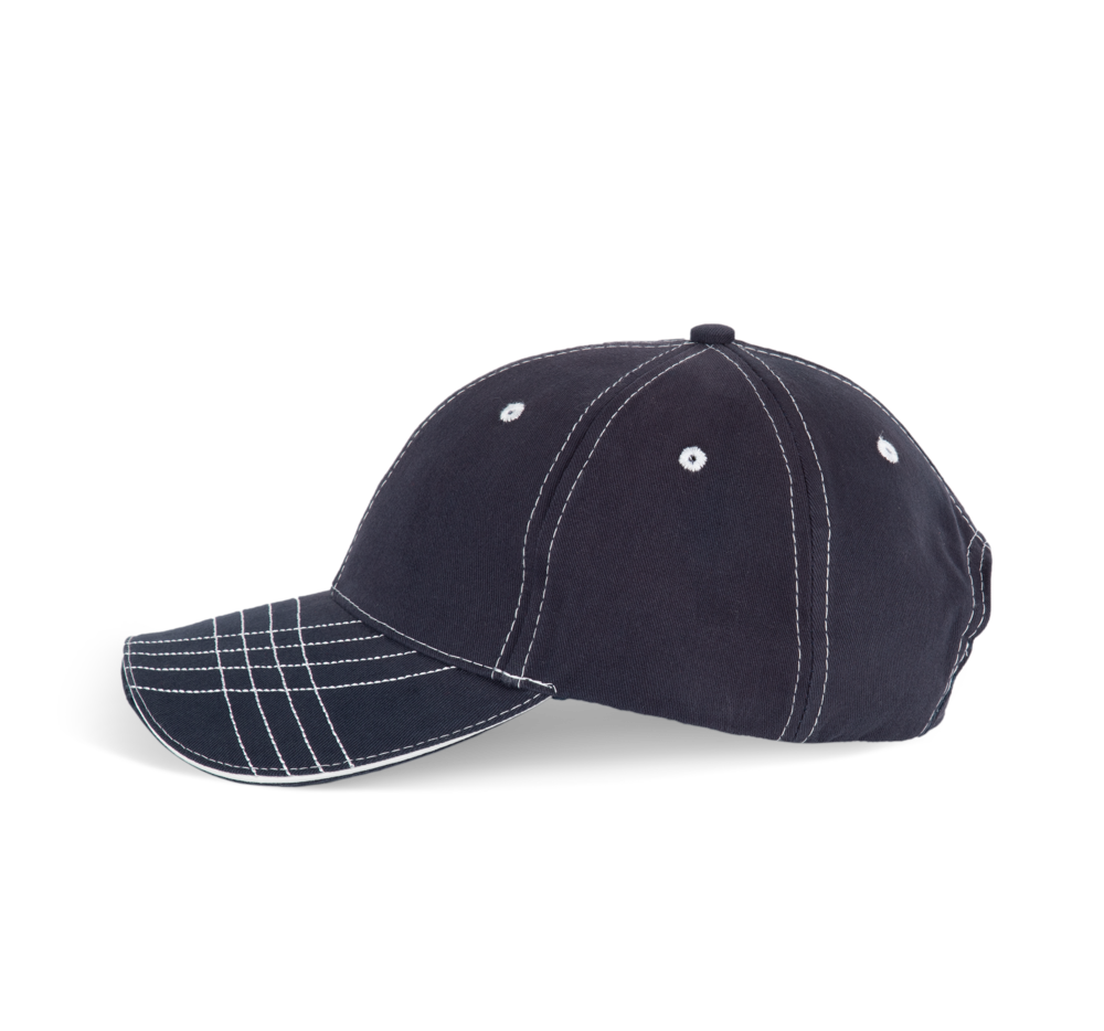 100% geborsteld twill katoen. 6 verstevigde panelen. Eyelets en naden in contrastkleur. Katoenen zweetband.