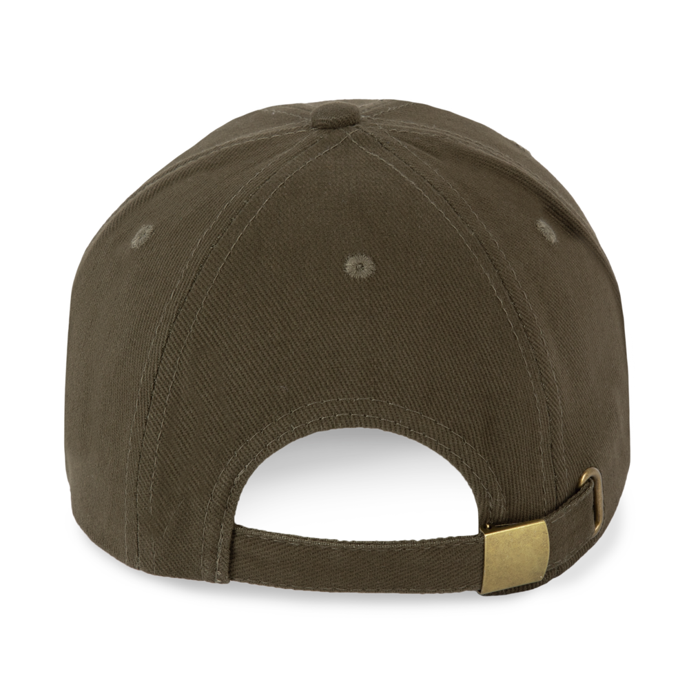 100% geborstelde zware katoen. 6 verstevigde panelen. Voorpaneel eenvoudig te bedrukken. Verstelbare metalen gesp-sluiting.