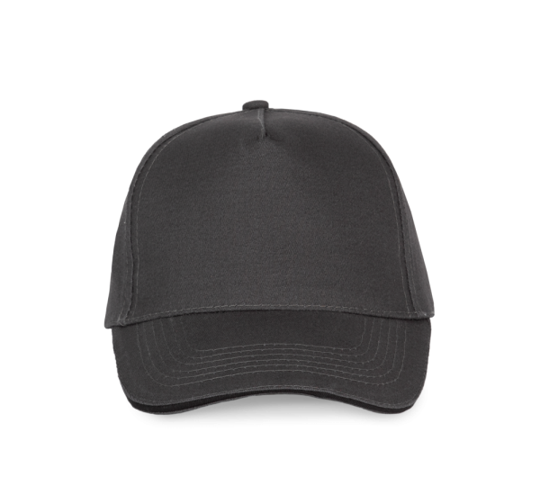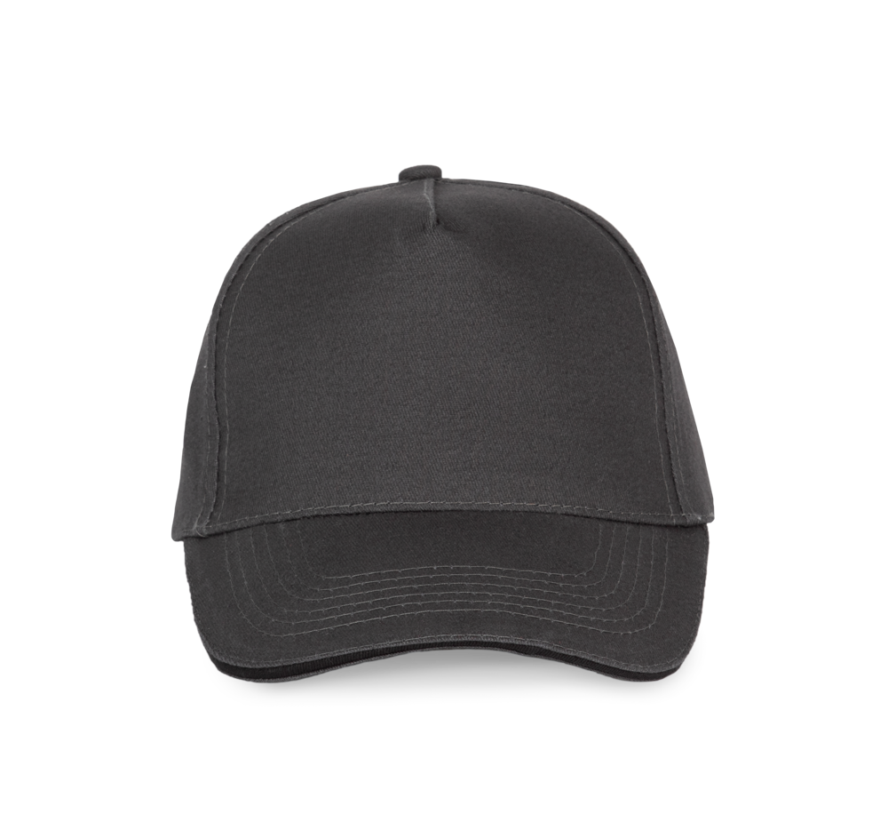 100% zwaar geborsteld sergé katoen. 5 panelen. Klep met contstrasterende bies. Katoenen zweetband. Verstelbare gesp-sluiting.