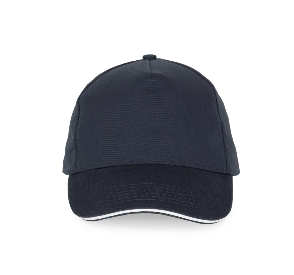 100% zwaar geborsteld sergé katoen. 5 panelen. Klep met contstrasterende bies. Katoenen zweetband. Verstelbare gesp-sluiting.