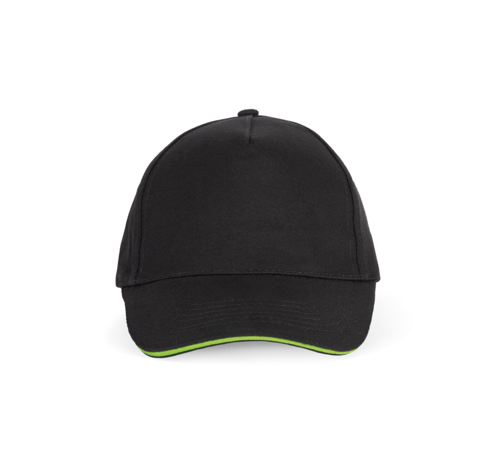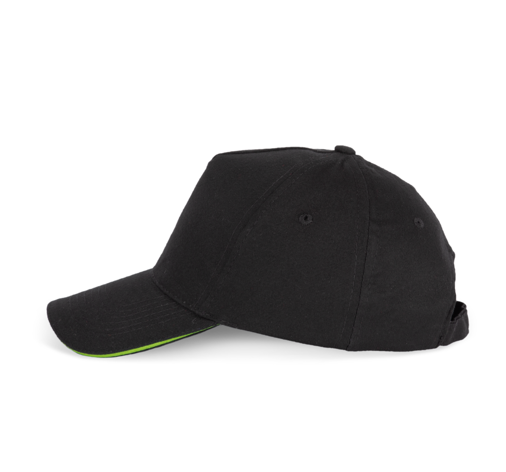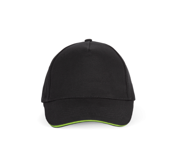 100% zwaar geborsteld sergé katoen. 5 panelen. Klep met contstrasterende bies. Katoenen zweetband. Verstelbare gesp-sluiting.