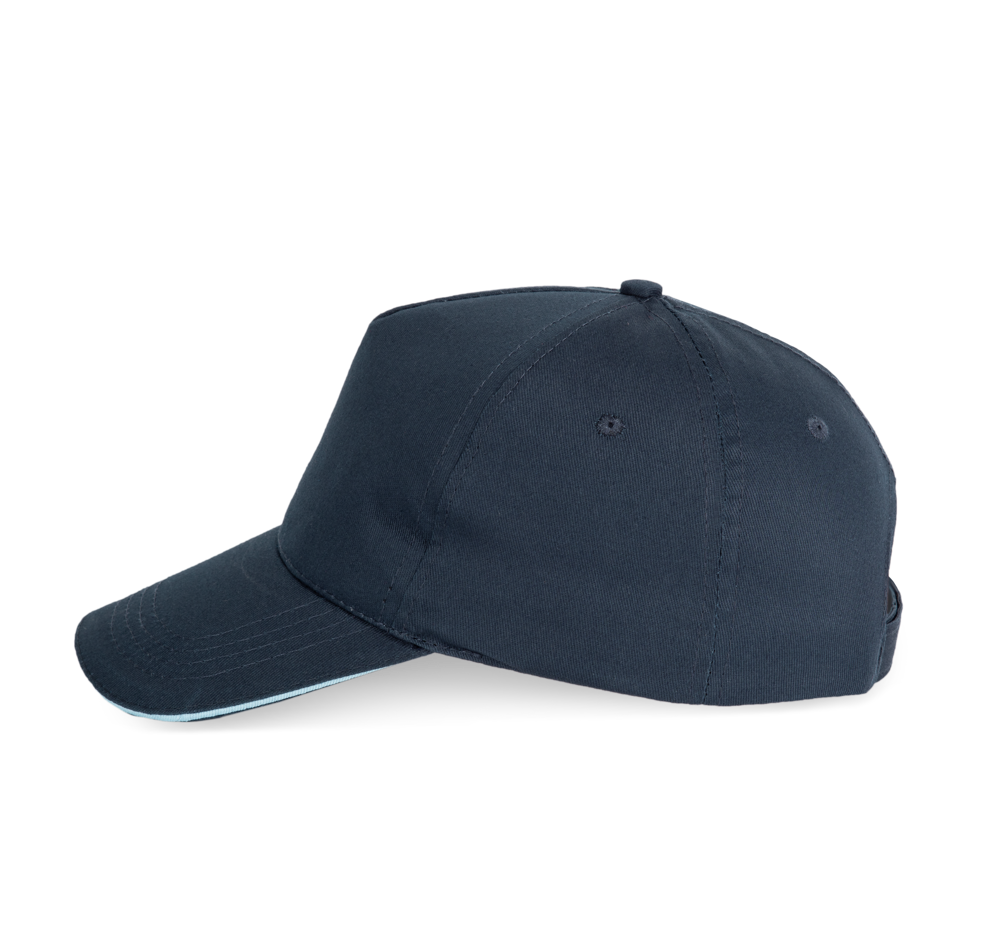 100% sergé katoen. Pet met 5 panels en gecontrasteerde bies. Katoenen zweetbandje. Klittenbandsluiting.