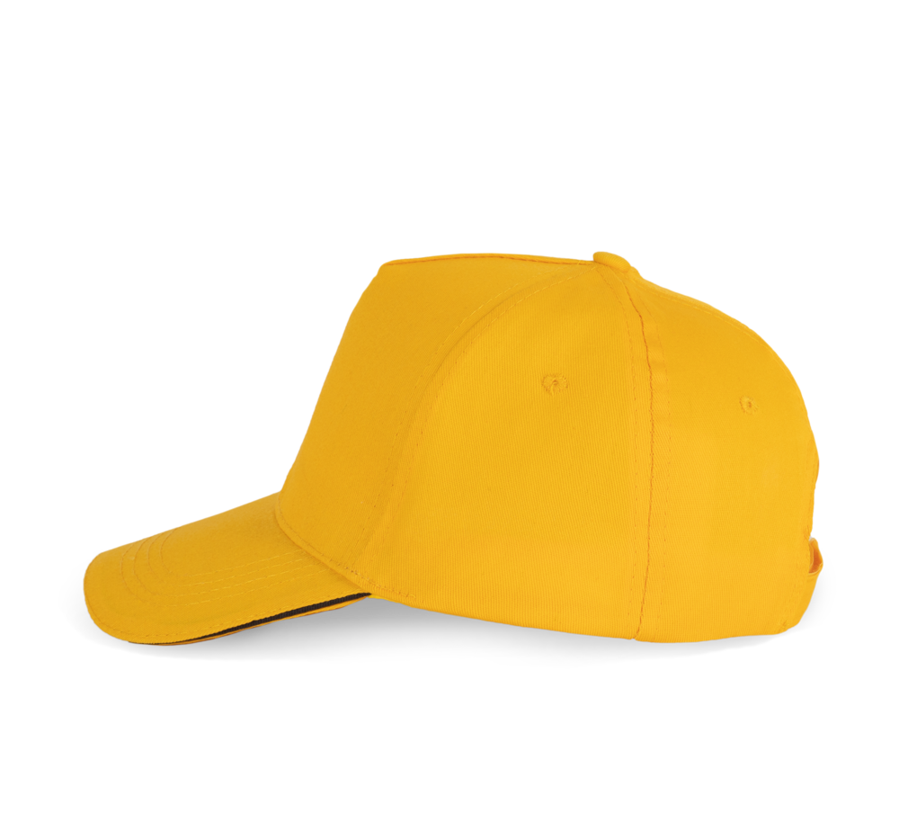 100% sergé katoen. Pet met 5 panels en gecontrasteerde bies. Katoenen zweetbandje. Klittenbandsluiting.