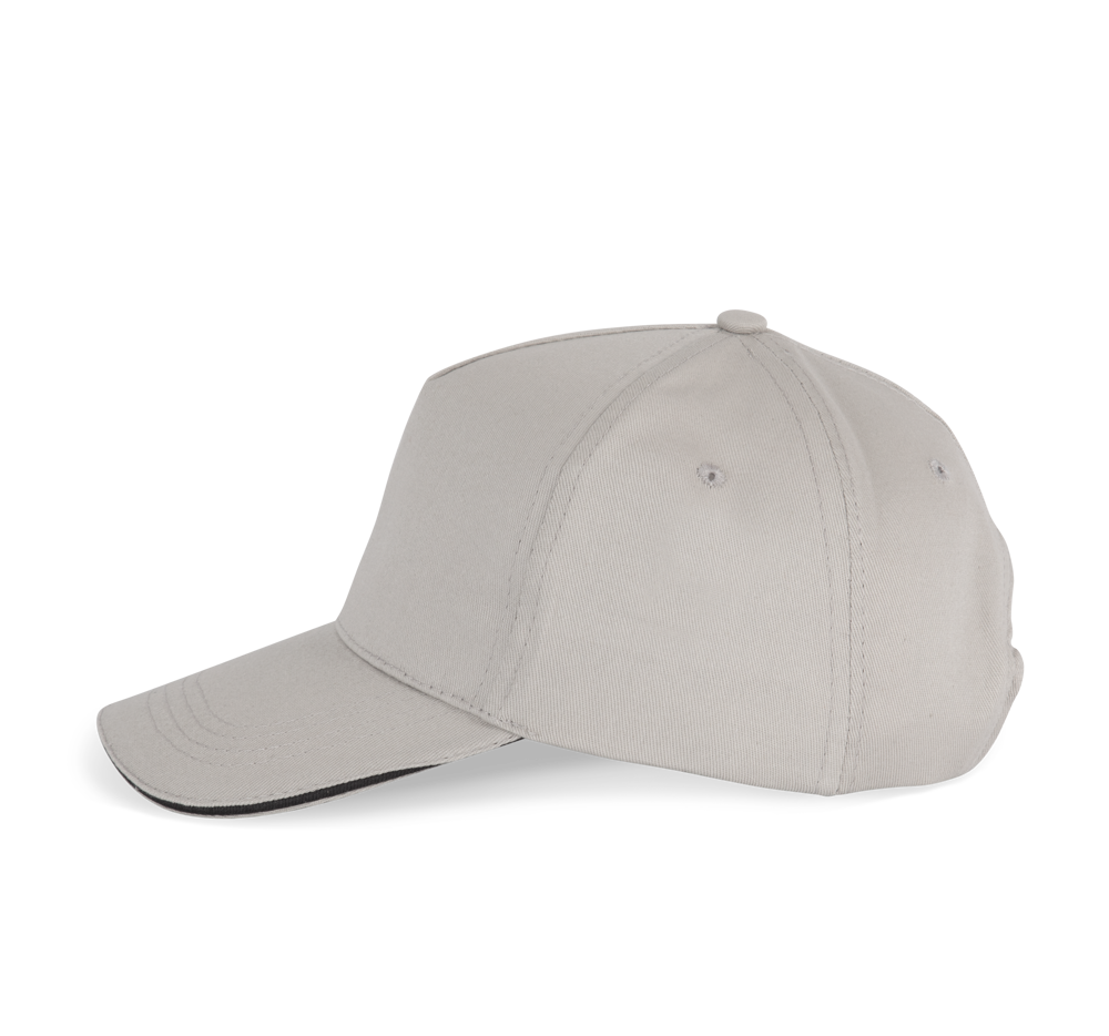 100% sergé katoen. Pet met 5 panels en gecontrasteerde bies. Katoenen zweetbandje. Klittenbandsluiting.