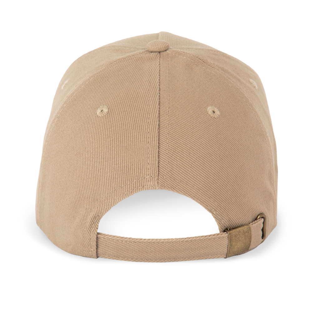 100% katoen. Dik gekamd katoen. Pet met 5 panelen. Sluiting aan de achterkant met metalen gesp.
