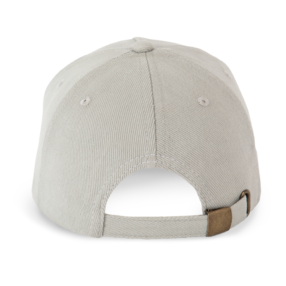 100% katoen. Dik gekamd katoen. Pet met 5 panelen. Sluiting aan de achterkant met metalen gesp.