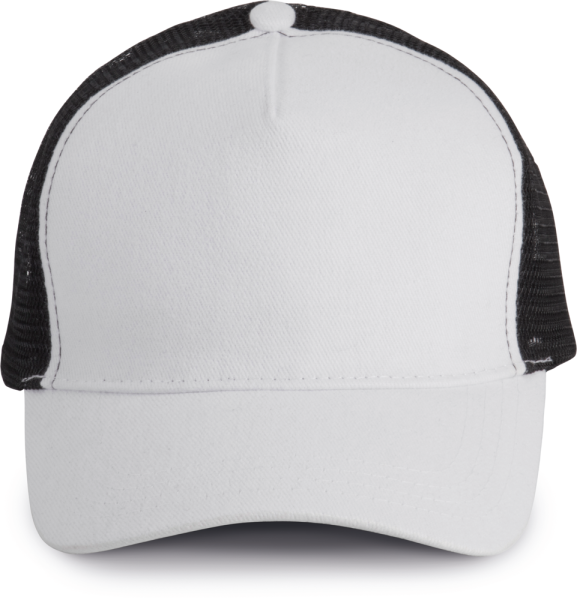 100% zwaar geborsteld katoen op frontpaneel en zonneklep, mesh 100% polyester. 5 panelen....meer