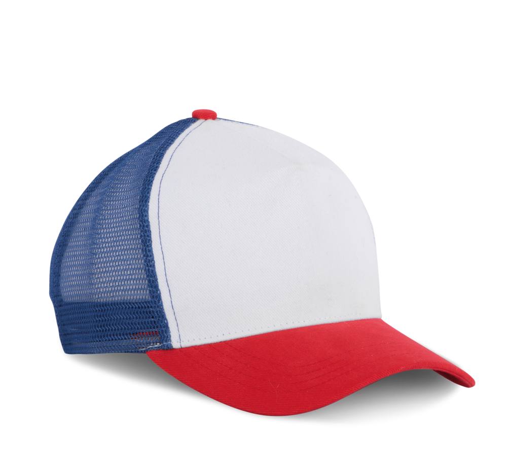 100% zwaar geborsteld katoen op frontpaneel en zonneklep, mesh 100% polyester. 5 panelen....meer