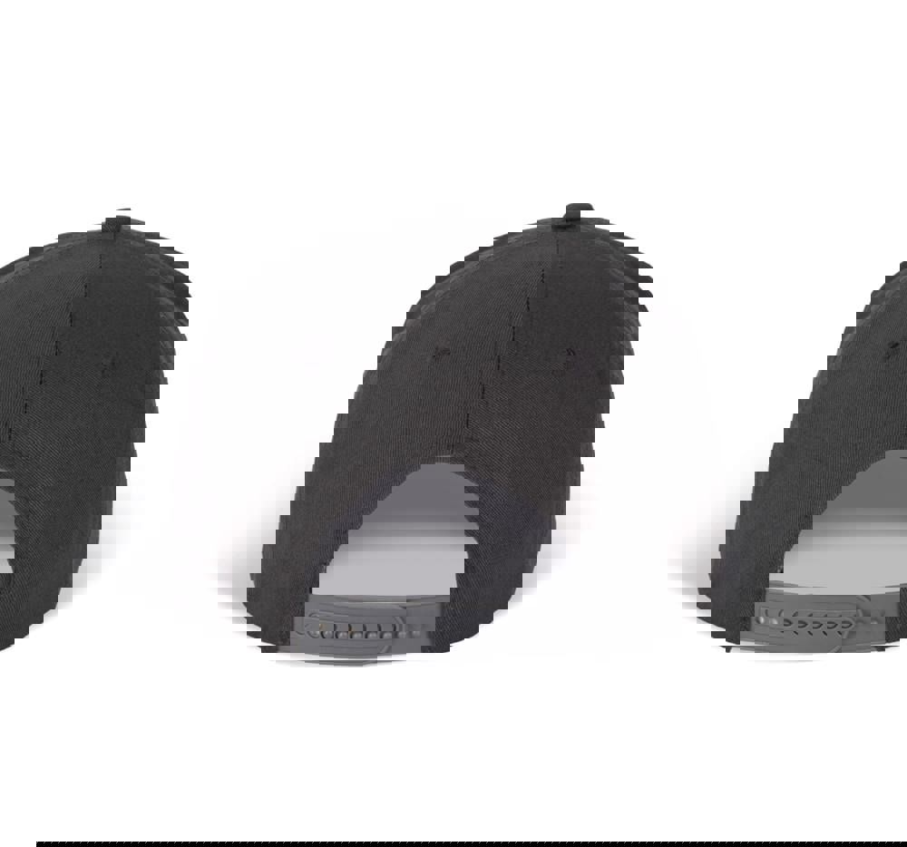 100% twillkatoen. 5 panelen. Platte zonneklep. Verstelbare druksluiting van plastic.