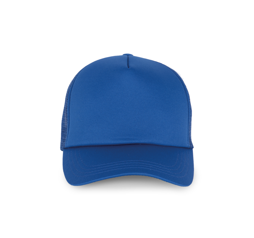100% polyester met mesh van polyester aan de achterkant. 5 panelen. Eenvoudige aanpassing van het frontpaneel. Verstelbare druksluiting van plastic. Hoofdomvang: 53 cm.