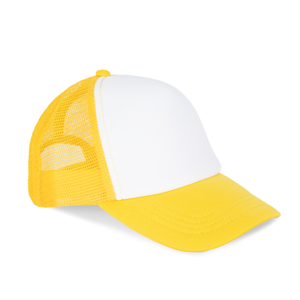 100% polyester met mesh van polyester aan de achterkant. 5 panelen. Eenvoudige aanpassing van het frontpaneel. Verstelbare druksluiting van plastic. Hoofdomvang: 53 cm.