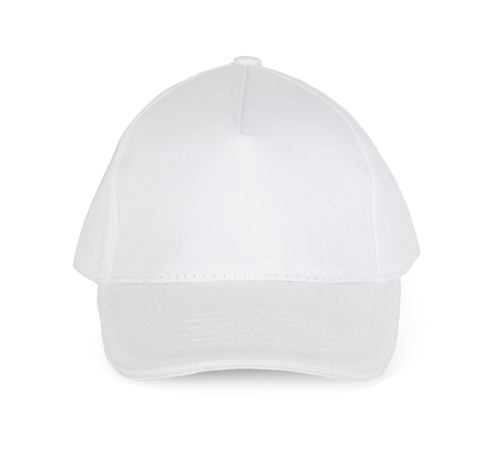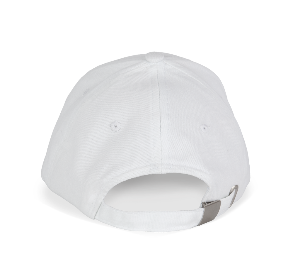 100% geborsteld twillkatoen. 5 panelen. Contrasterende bies. Verstelbare sluiting aan de achterkant met metalen gesp. Hoofdomvang: 53 cm.