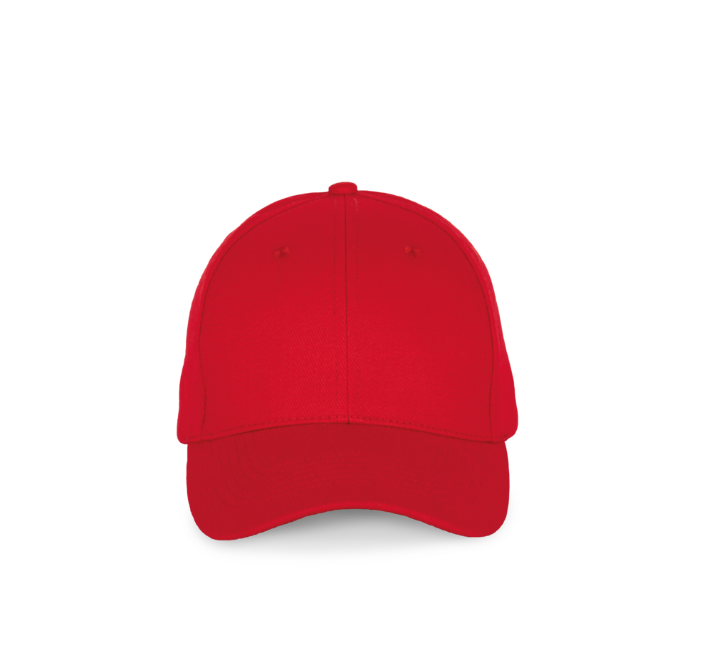 100% katoen. Pet 6 panelen. Verstelbare sluiting met metalen gesp en zelfblokkerende lus.