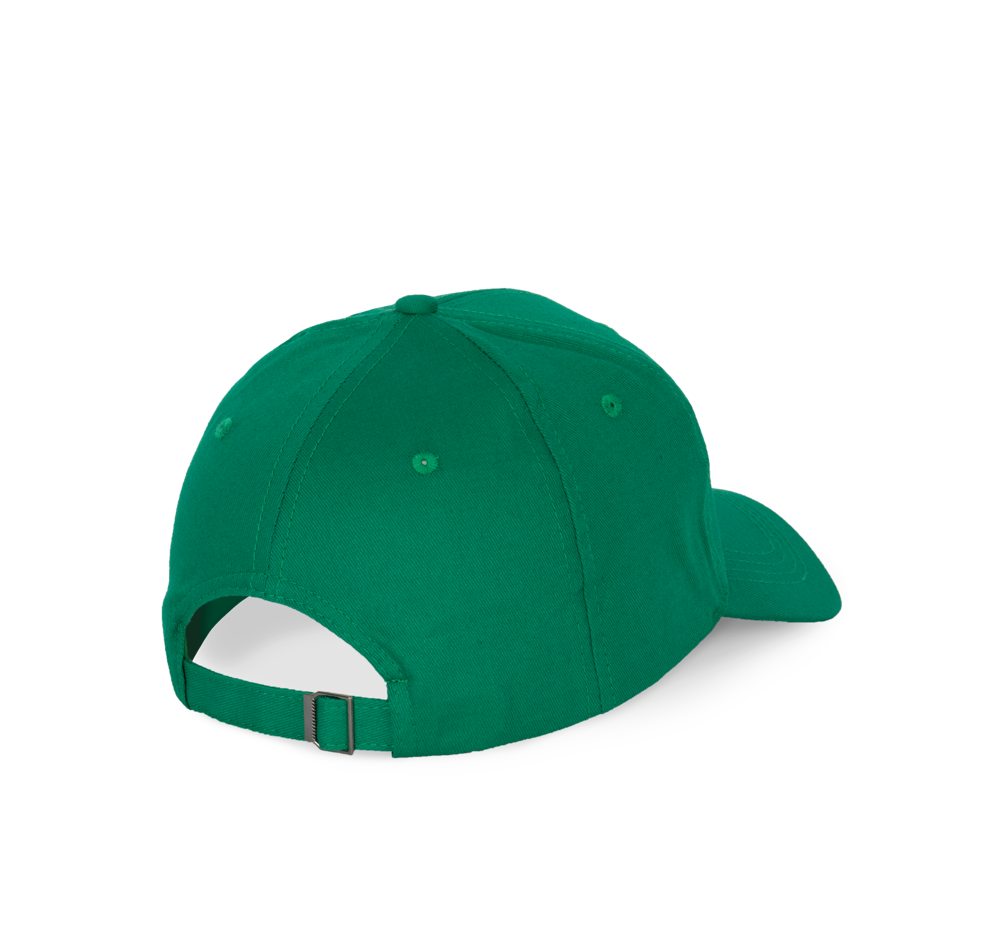 100% katoen. Pet 6 panelen. Verstelbare sluiting met metalen gesp en zelfblokkerende lus.
