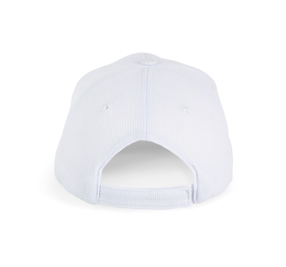 100% polyester piqué. Luchtgaatjes. Rand van de klep in contrastkleur. Afgezet met een band van badstof aan de binnenkant voor een optimaal comfort. Verstelbare sluiting van klittenband.