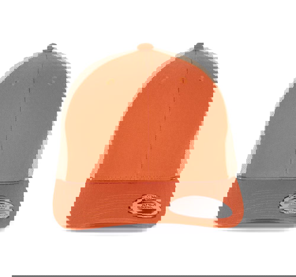 60% katoen / 40% polyester. 6 panelen. Truckermodel van hoge kwaliteit met zonneklep met half profiel en verstevigde voorpanelen in dezelfde kleur. Verstelbare druksluiting van plastic.
