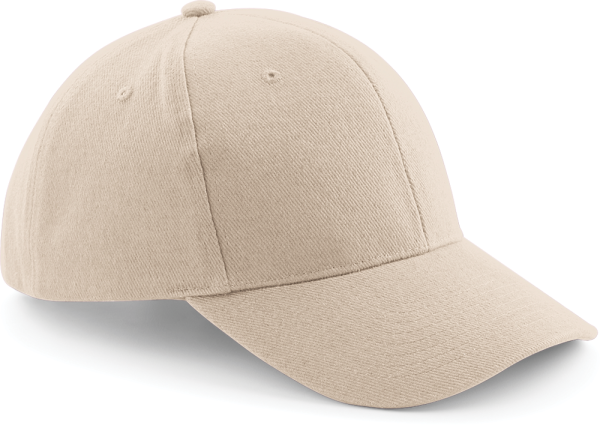100% geborsteld drillkatoen, 6 panelen, voorgevormde klep, verluchtingsgaatjes, verstelbare sluiting met gesp.