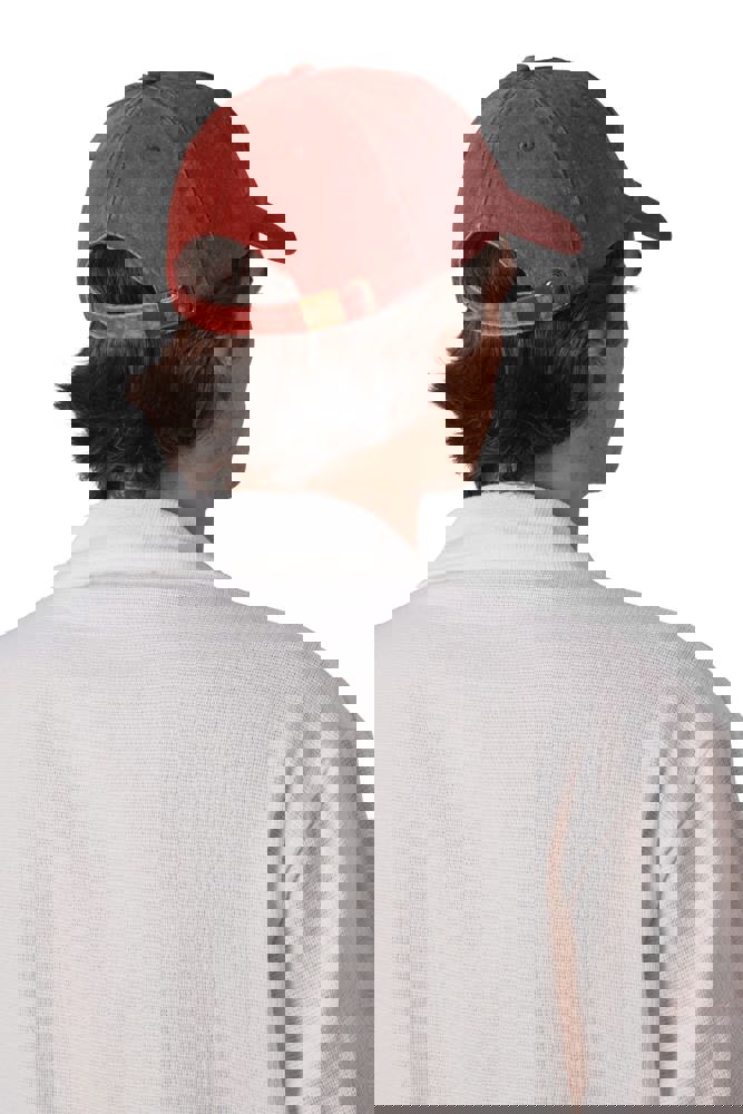 100% zwaar geborsteld katoen voor de vintage look. 6 panelen. Laag profiel zonneklep, afgerond. Verstelbare sluiting aan de achterkant met metalen gesp.